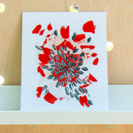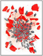 This piece makes a statement in your space. It's fun and energetic, driving you to channel energy into whatever you are doing. It is perfect for your office, or can add a pop of color to your living room. Vibrant red and subtle orange standout in this abstract artwork print. The underlying black ink provides structure to the metallic accents in this mixed media artwork, Toy Packaging.